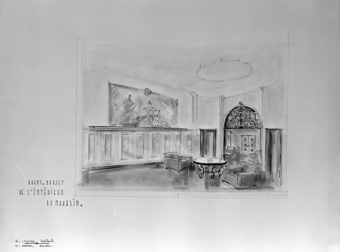 Avant-projet de l'intérieur du magasin (1949).Immatriculation