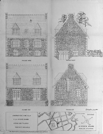 Projet de villa (non numéroté), construction d'une villa avenue des Tilleules pour M. et Mme Murez, élévation de la façade nord, élévation de la façade sud, élévation de la façade ouest, élévation de la façade est.Immatriculation