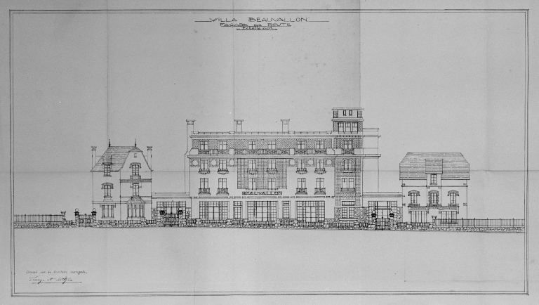 Villa Beauvallon. Elévation de la façade sur route.Immatriculation