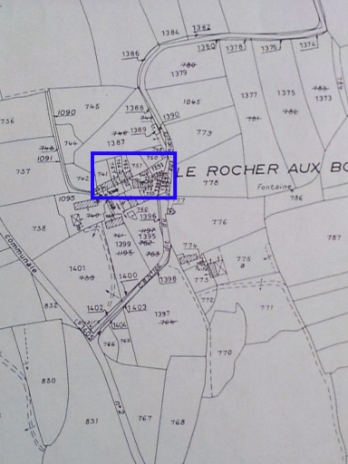 Alignement de maisons, le Rocher aux Boeufs (Epiniac),