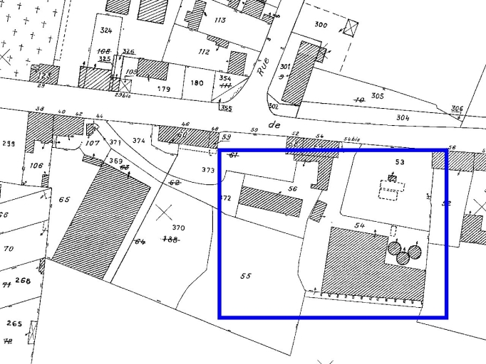 Vue de situation de la maison et de l'usine sur le cadastre de 1982Immatriculation