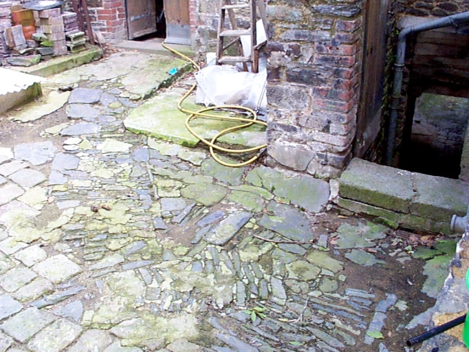 Pavage de la cour devant la forge à l'extrémité du passage latéralImmatriculation