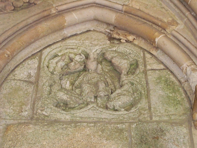 Tétramorphe (?) sur le mur est du petit porche sudImmatriculation