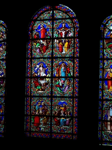 Verrière de la baie 00 : vie du Christ, vie de sainte Cécile, scènes bibliques illustrant la musique,