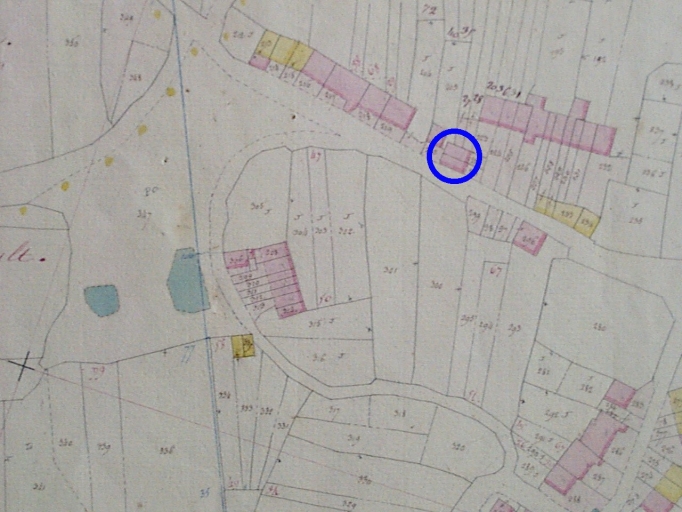 Le logis (cerclé en bleu) sur le cadastre de 1830Immatriculation