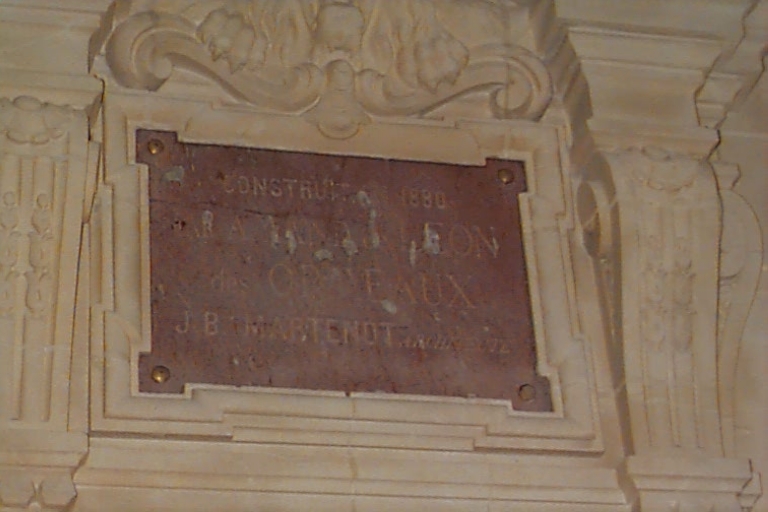 Détail de la plaque avec signature de l'architecteImmatriculation