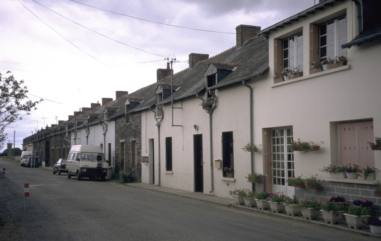 Cité ouvrière construite en 1892, façade sud. Il s'agit d'un ensemble concerté d'une vingtaine de logements avec jardinets à l'arrière.Immatriculation