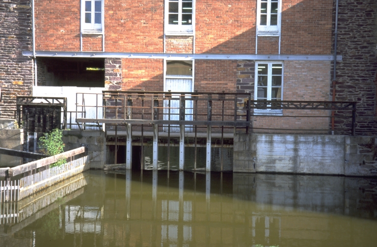 Détail du bâtiment d'eau construit en 1904, du vannage de décharge et de la vanne motrice.Immatriculation