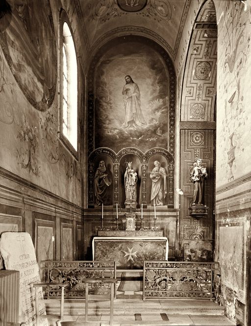 Chapelle, vue du bas-côté nord prise vers l'est, vers 1960. Collection particulière.Immatriculation