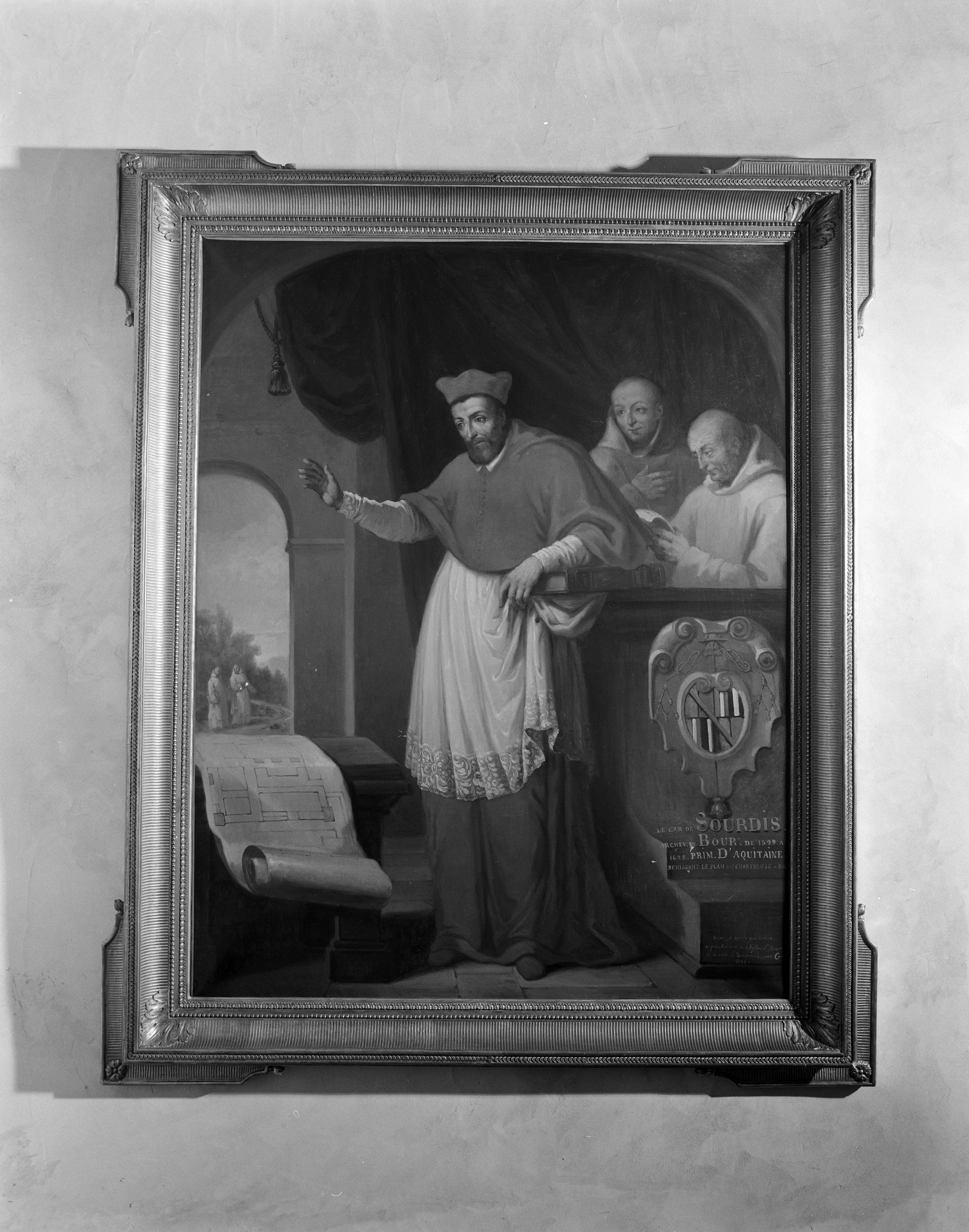 Tableau : le cardinal de Sourdis bénissant le plan de la chartreuse de Bourg, mairie (Pont-Scorff),
