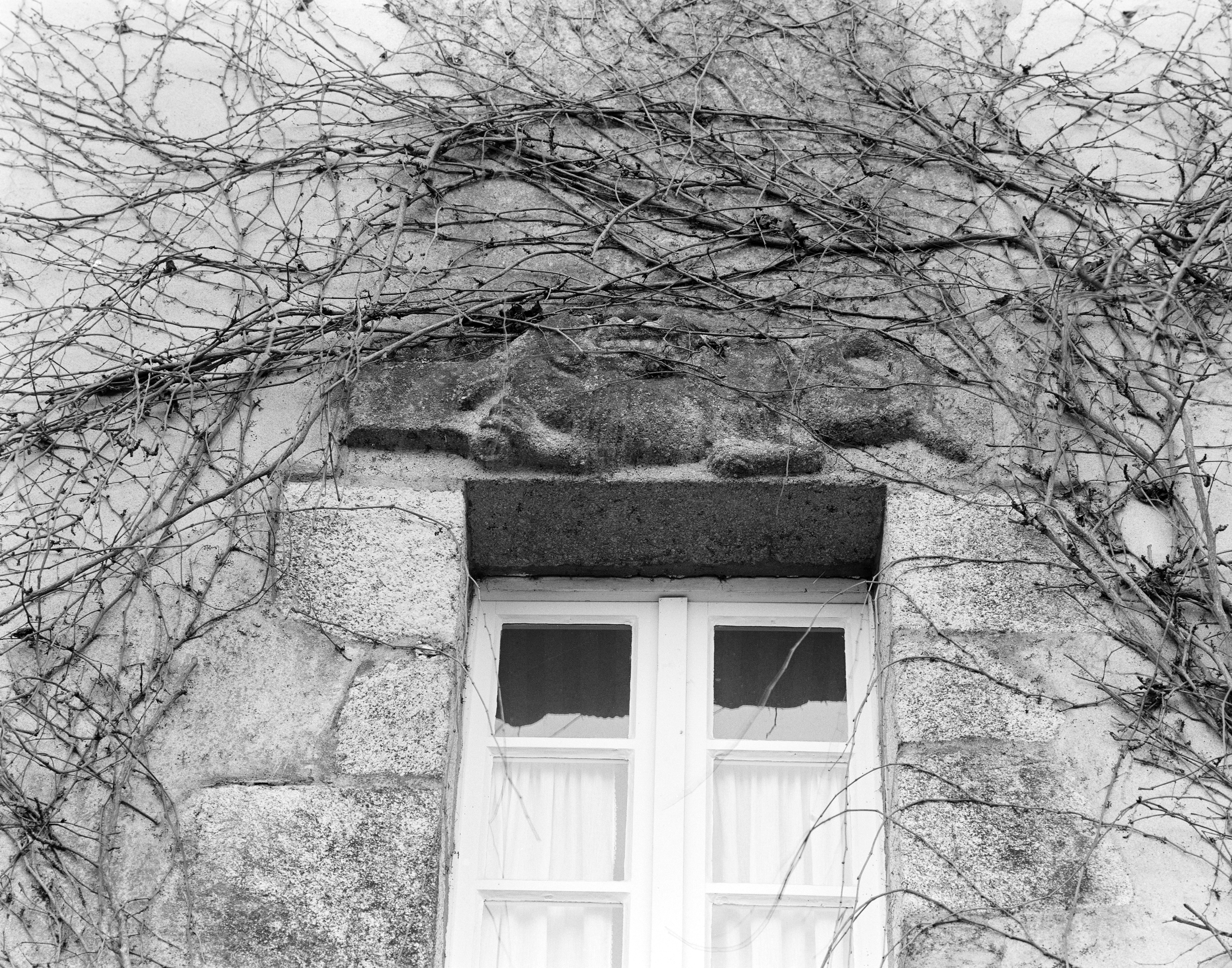 Dépendance en retour au nord, détail d'un linteau remployé.Immatriculation