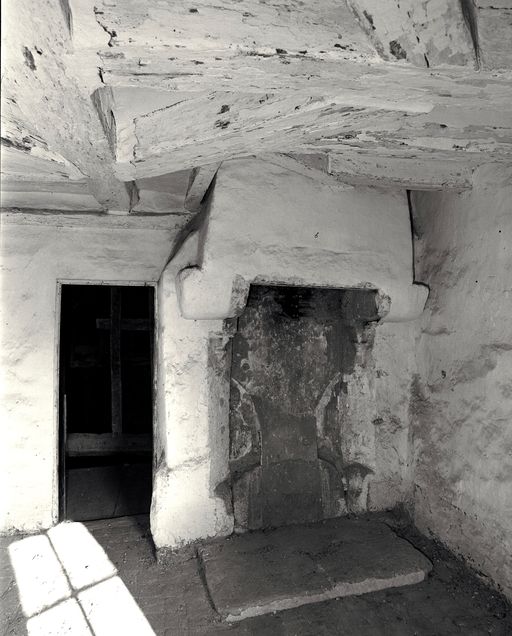 Chambre haute de la tour, cheminée et porte nord.Immatriculation