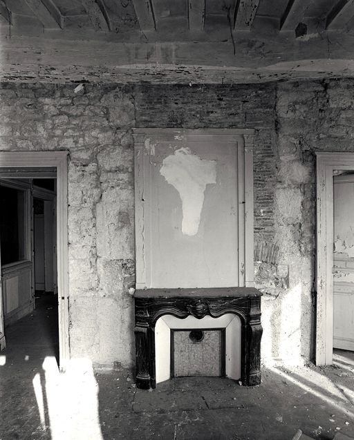 1er étage, pièce sud, mur nord : vestiges de cheminée ancienne et cheminée 18e siècle.Immatriculation