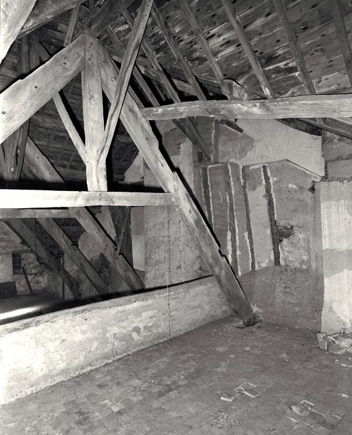 Comble de la partie nord, détail mur nord en partie à pan de bois mitoyen avec le n°32.Immatriculation