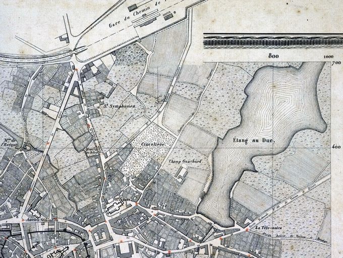 Plan de la ville... de Vannes, par Bassac, éd.1869 : partie nord-est. AM Vannes 9Fi.Immatriculation