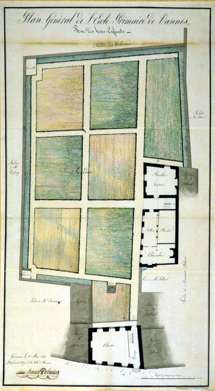 Ecole primaire de la rue des Bons Enfants. Plan général par Brunet-Debaines, 1813. AM Vannes.Immatriculation