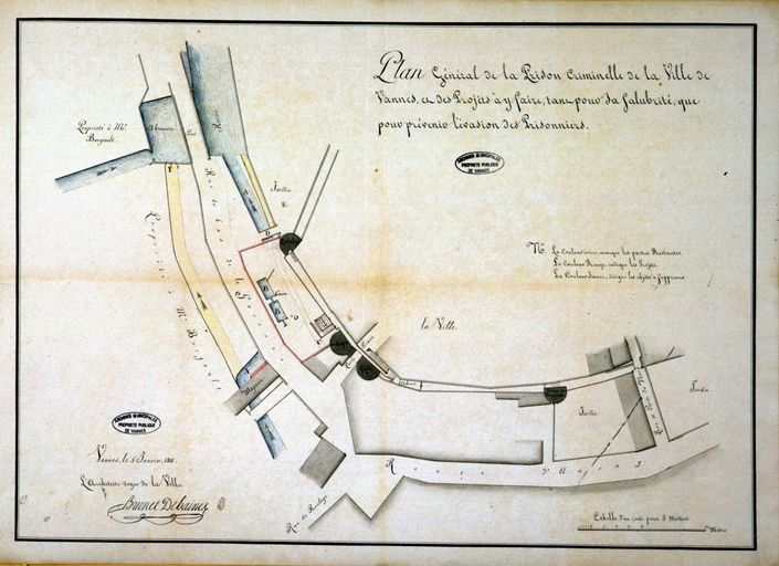 Plan général de la prison criminelle de Vannes..., par Philippe Brunet-Debaines, 5 janvier 1811. AM Vannes.Immatriculation