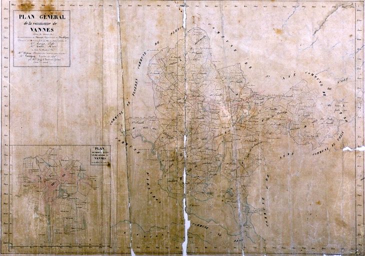 Plan cadastral de 1844. Tableau d'assemblage de la commune. AM Vannes 21Fi.Immatriculation