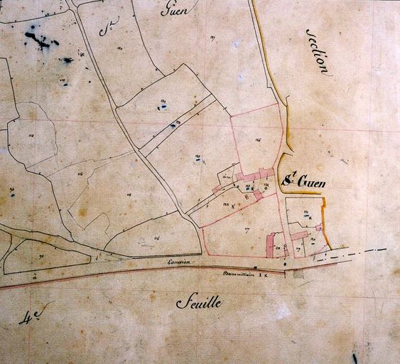 Plan cadastral 1844 : feuille B1, Saint-Guen. AM Vannes 21Fi.Immatriculation
