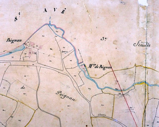 Plan cadastral de 1844 : feuille B2, Moulin de Poignant. AM Vannes 21Fi.Immatriculation