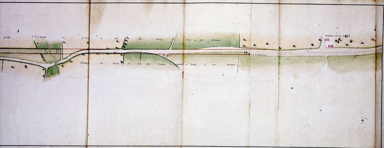 Fonds de l'Intendance. Plan de la banlieue de la route de Vannes à Auray par Chambon de Beauvalet, 2e moitié 18e siècle, partie ouest. AD Ille-et-Vilaine C704/24.Immatriculation