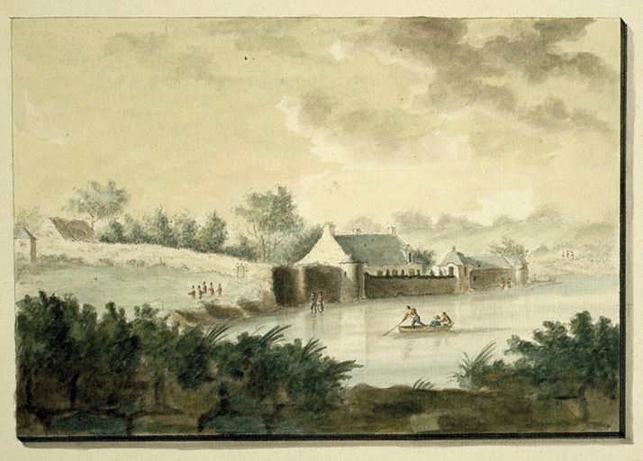 Dessin aquarellé de Galles, 1780. Vue sud-ouest. AD Morbihan 18 Fi 6.Immatriculation