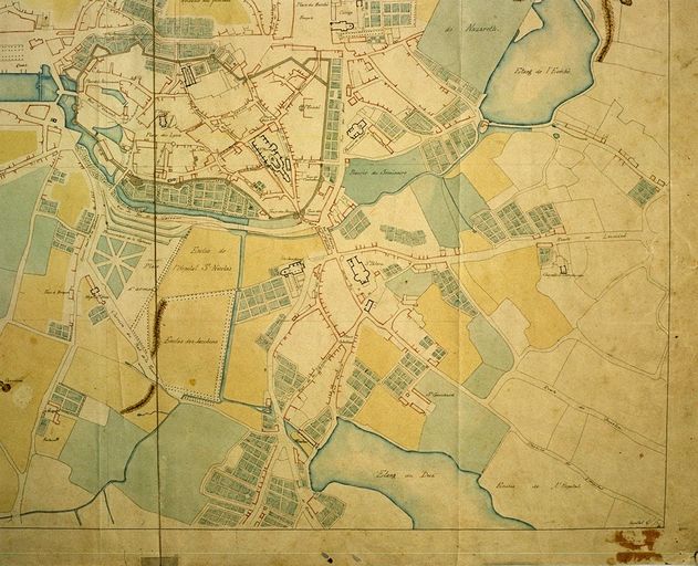 Vannes en 1785, avec indication des alignements projetés. Copie du plan d'embellissement de Maury : quartier Saint-Patern. AD Morbihan 1 Fi 88/1.Immatriculation
