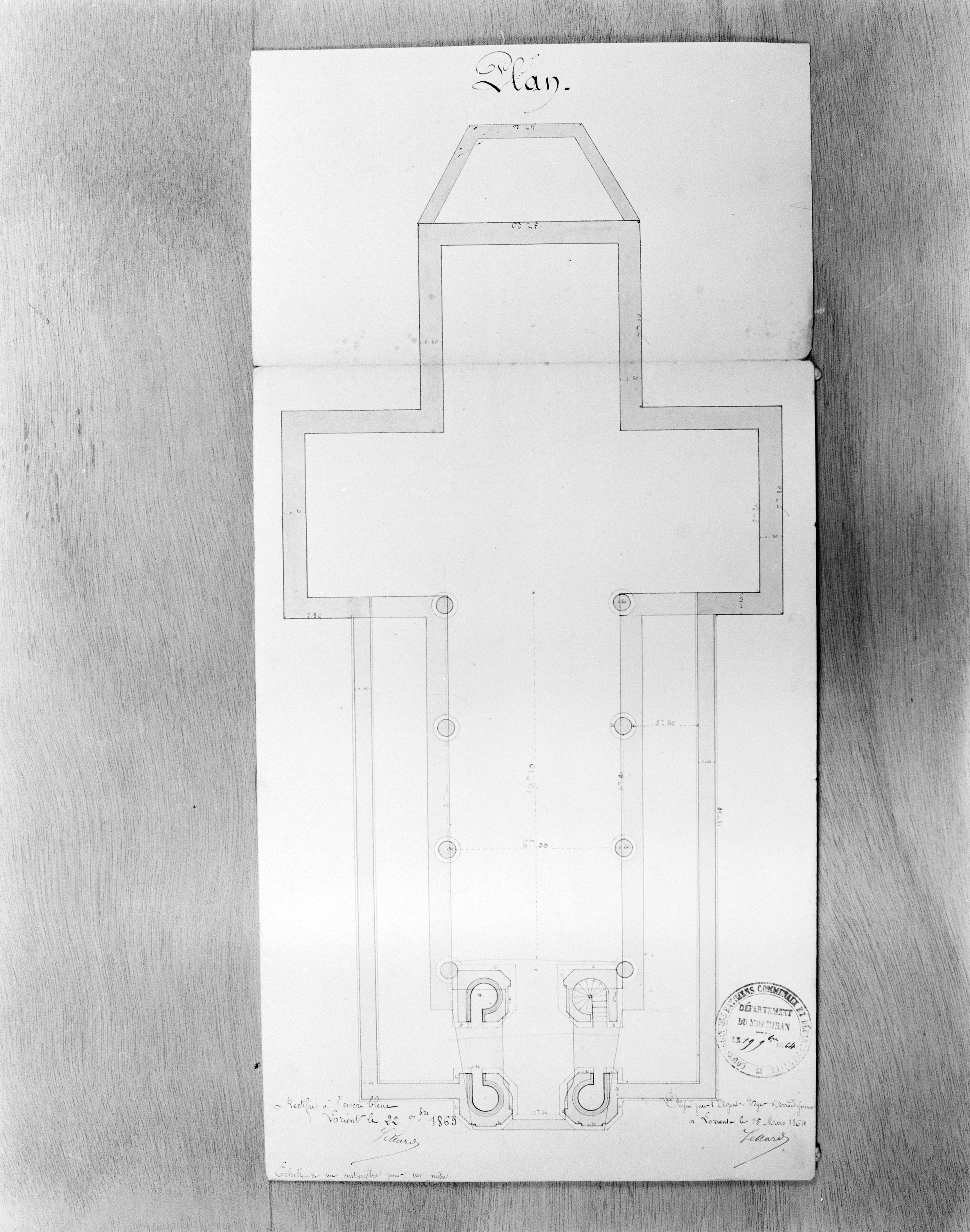 Projet de reconstruction partielle de l'église paroissiale. Plan au sol de l'église, 1864.Immatriculation