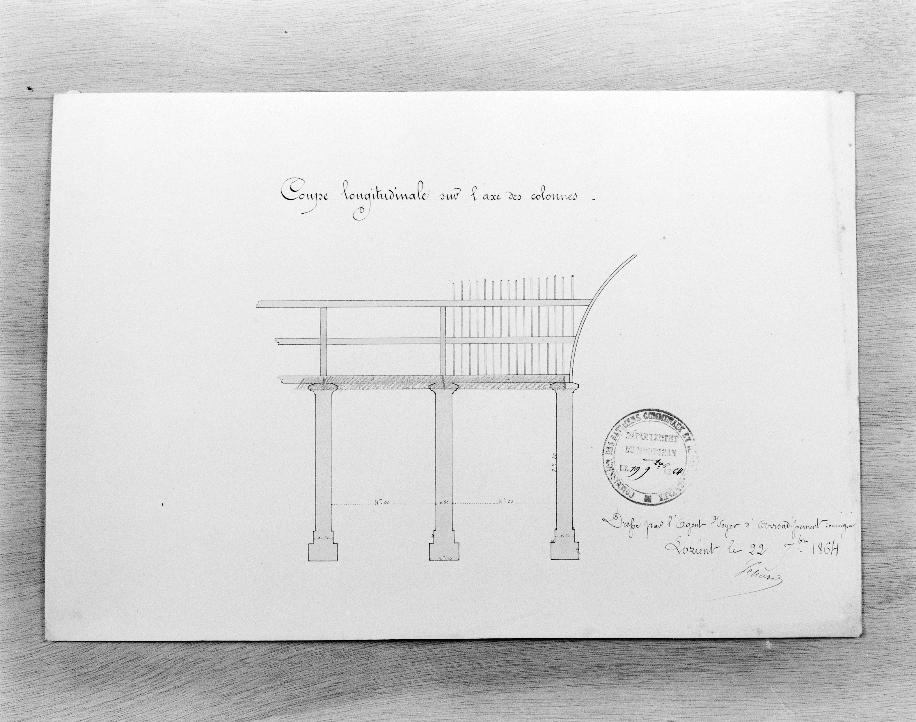 Coupe longitudinale sur l'axe des colonnes, 1864.Immatriculation