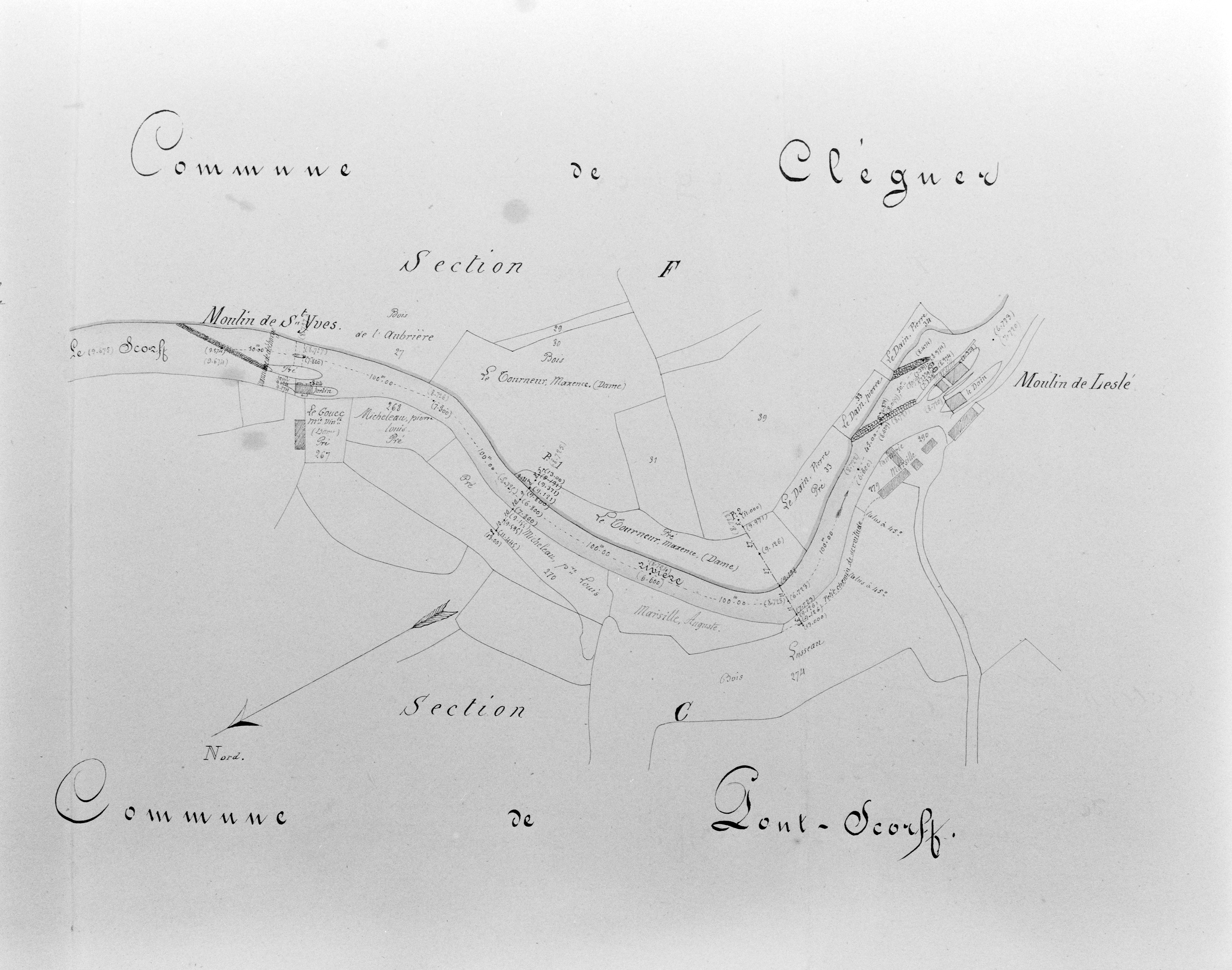 Moulin de Saint Yves et moulin de Leslé. Plan général et nivellement, 1859.Immatriculation