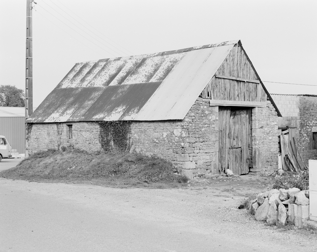 Grange à porte charretière daté 1797, vue générale sud-ouest.Immatriculation