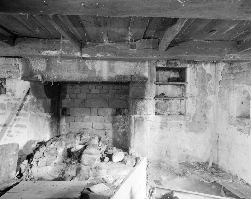 Rez-de-chaussée, partie est : cheminée, niche et placard mural.Immatriculation
