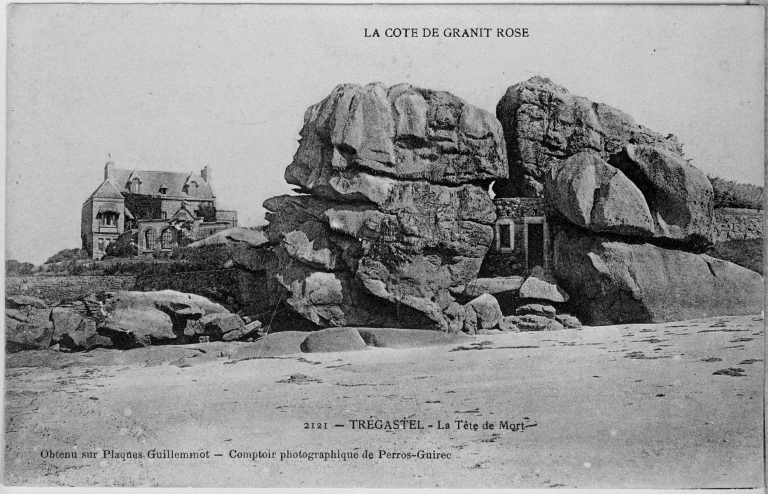 Trégastel, la tête de mort, carte postale, par le comptoir photographique de Perros éditeur, 1er quart 20e siècle.Immatriculation