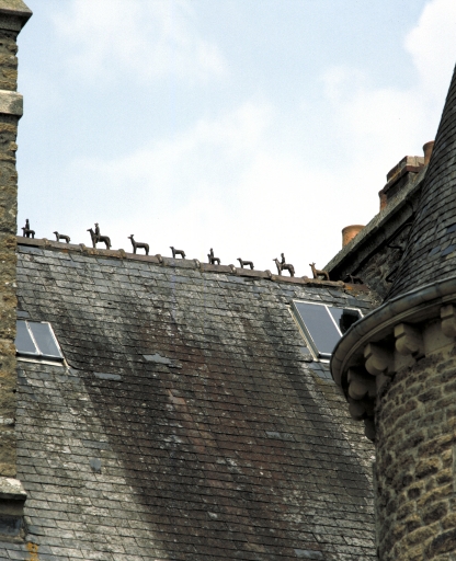 Détail du faîtage de l'aile ouest : chasse à courreImmatriculation