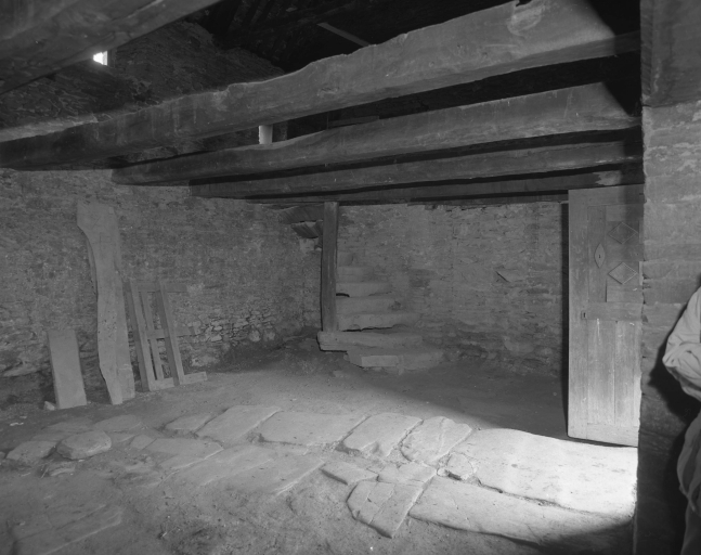 Logis 1 (1696), vue partielle de la salle et escalier, état en 1999Immatriculation