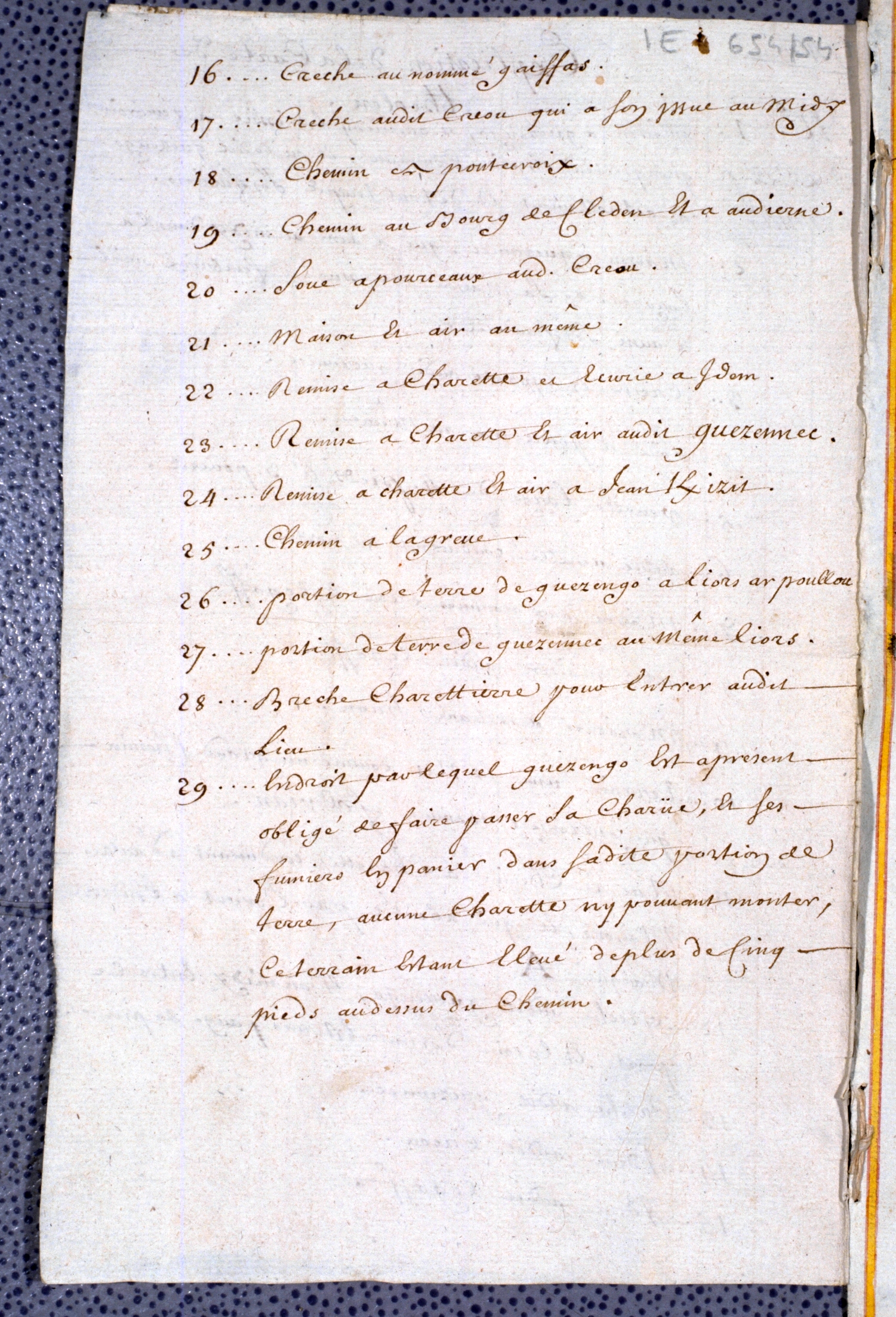 Plan du village de Théolen daté de 1743, légende 2/2.Immatriculation