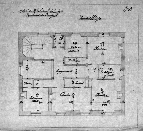 Plan du premier étage, dessin (A. C. Rennes).Immatriculation