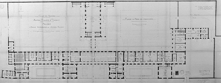 Ville de Rennes. Ancien collège Saint-Vincent. Projet d'école supérieure de jeunes filles, dessin, par Leray, 1913 (A. C. Rennes).Immatriculation