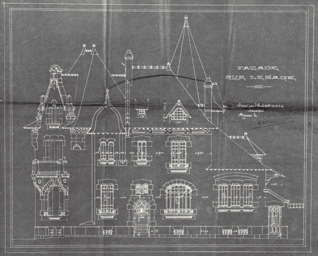Élévation sur la rue Lesage (A.P.)Immatriculation