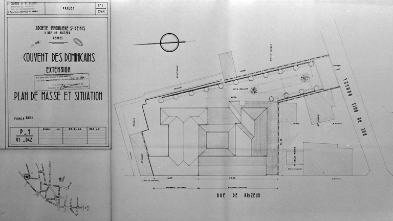 Couvent de Dominicains, extension, plan masse et de situation, Coirre et Glorot architectes, 1964 (A. C. Rennes).Immatriculation