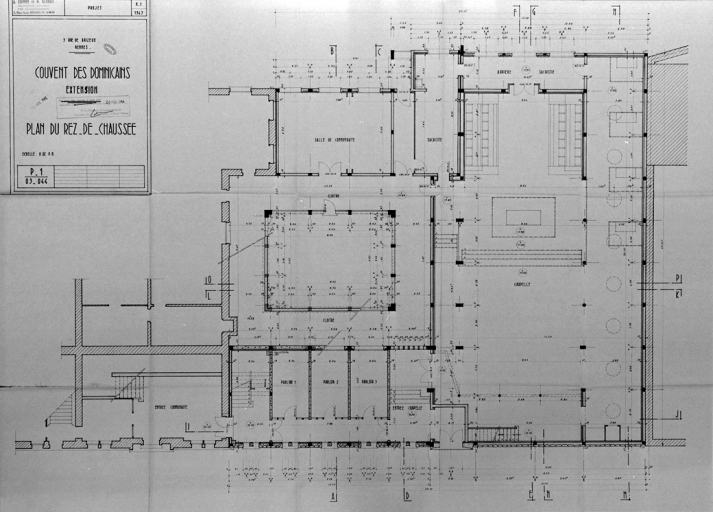 Couvent de Dominicains, extension, plan du rez-de-chaussée, Coirre et Glorot architectes, 1964 (A. C. Rennes).Immatriculation