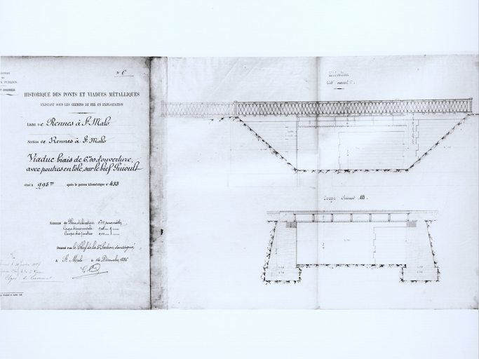 Dol-de-Bretagne : élévation et coupe du viaduc du Bief Guyoult (dessin de 1862)Immatriculation