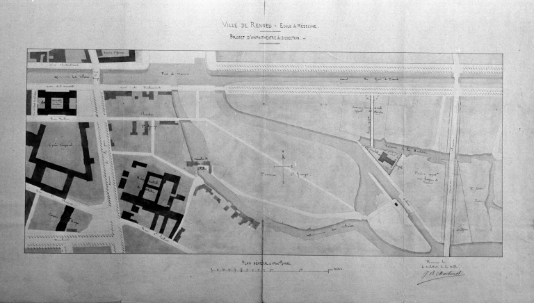 Projet d'amphithéâtre de dissection. Plan général. Dessin, par Jean-Baptiste Martenot, 1869 (A.C.Rennes )Immatriculation