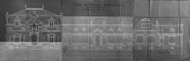 École de Médecine. Façade nord. Dessin, par Emmanuel Le Ray, 1903 (A.C.Rennes)Immatriculation