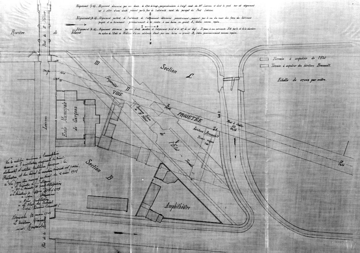 Acquisition des terrains dépendant de l'ancienne dérivation de l'écluse de Saint-Hélier, dessin, par A. Duval, 1899 (A.C.Rennes)Immatriculation