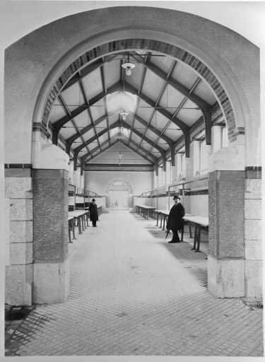 Vue intérieure des étals de boucherie, photographie, par Le Couturier.Immatriculation