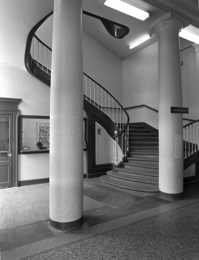 Intérieur : vue de la conciergerie et de l'escalier.Immatriculation