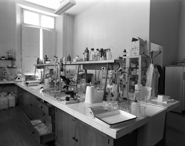 Intérieur : vue d'une salle de laboratoires (1er étage).Immatriculation