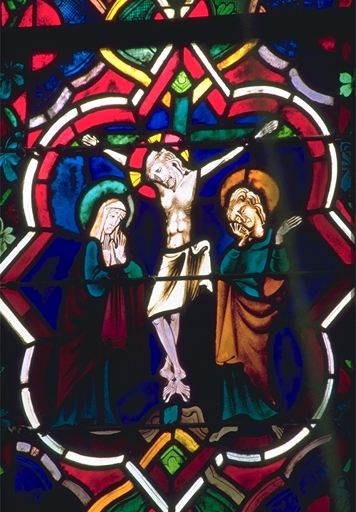 Verrière de la baie 100 (verrière légendaire) : Jugement dernier, Vie du Christ, Histoire d'Abraham, Vie de sainte Catherine, Vie de sainte Marguerite, évocation des évêques de Dol,