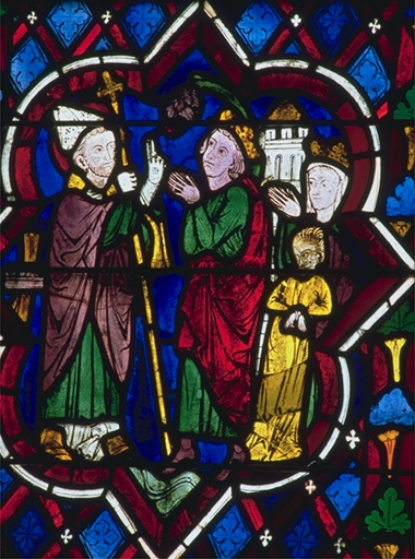 Verrière de la baie 100 (verrière légendaire) : Jugement dernier, Vie du Christ, Histoire d'Abraham, Vie de sainte Catherine, Vie de sainte Marguerite, évocation des évêques de Dol,
